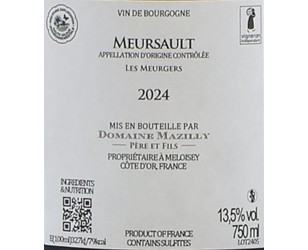 Meursault white 2024 "Les Meurgers" from Domaine Mazilly, very balanced, complex and intense fat.
