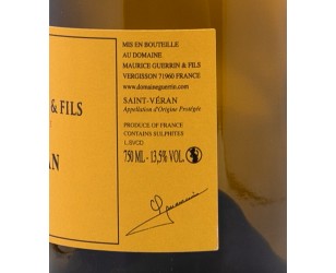 Parmi les lieux-dits les plus réputés de Saint-Véran, la Côte Dorée (anciennement Côte Rôtie) est ici particulièrement réussi avec ce millésime 2024. Réalisé par le Domaine Guerrin à Vergisson ce Saint Véran est très intense, aux arômes riches et précis.