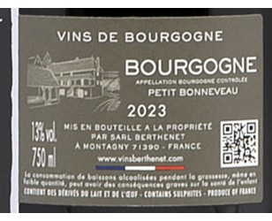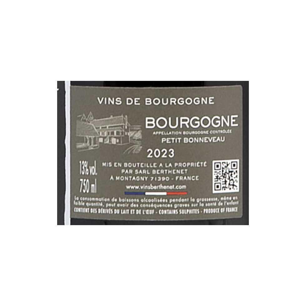 Il Bourgogne Rouge "Petit Bonneveau" 2023 esprime tutta la finezza del Pinot Noir de Bourgogne in una versione affascinante e fruttata, della tenuta Berthenet.